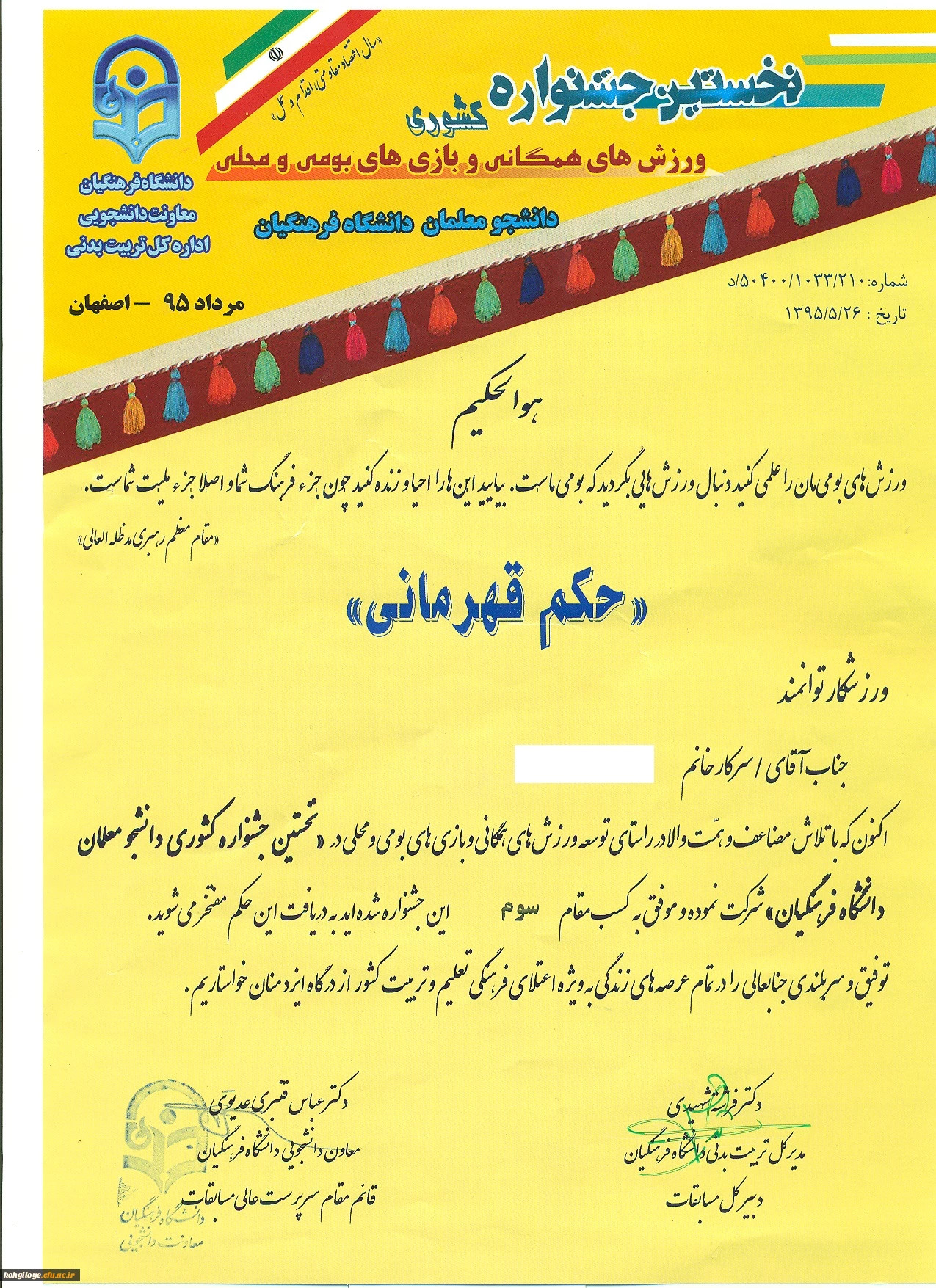 کسب مقام سوم تیمی دانشجو معلمان پردیس کوثر در جشنواره کشوری ورزش های همگانی و بومی محلی