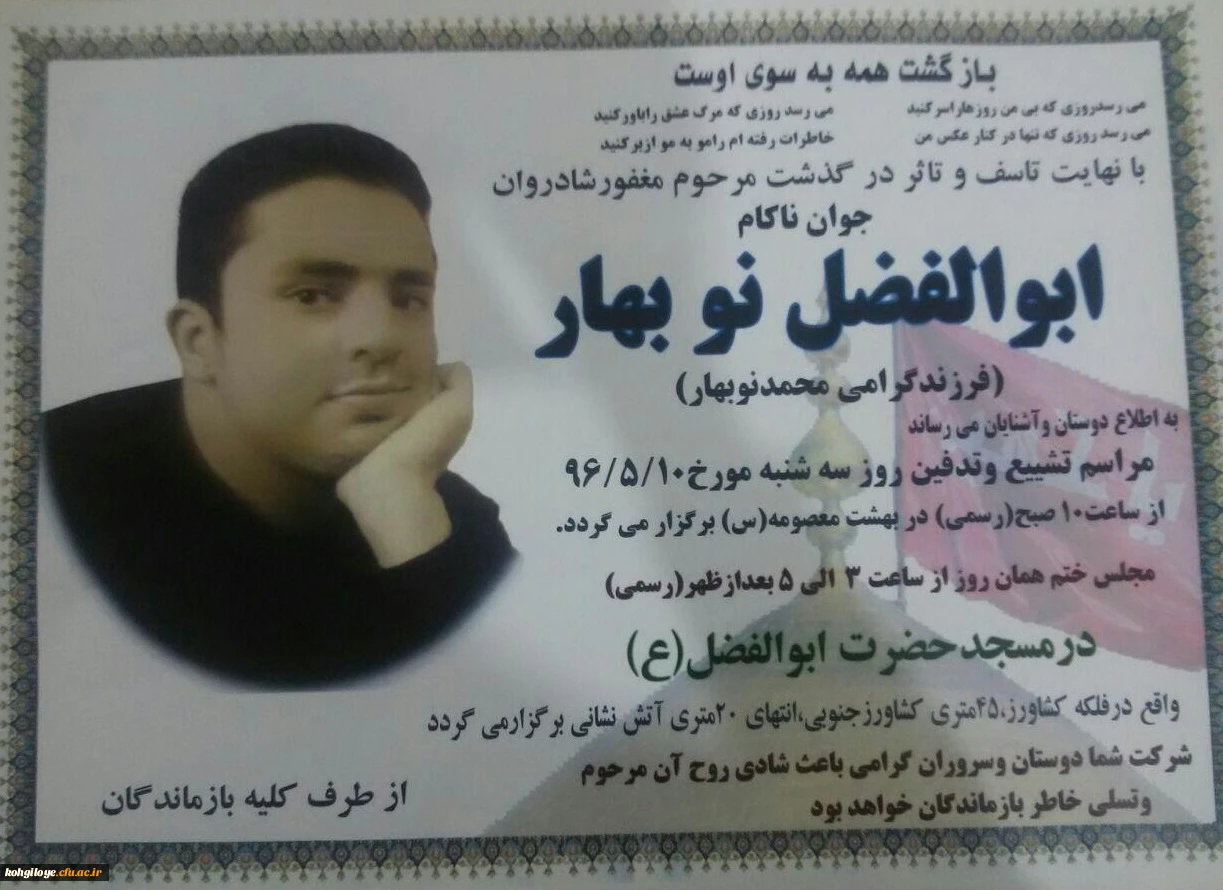 امتیاز دهید : پیام تسلیت روابط عمومی دانشگاه فرهنگیان استان به مناسبت درگذشت آقای نوبهار 2 سهشنبه 10 مرداد 1396 ساعت 9:45
