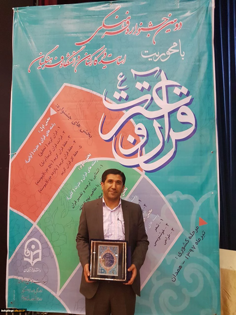 در دومین جشنواره فرهنگی کارکنان دانشگاه فرهنگیان سراسر کشور آقای مومنی به عنوان نفر اول مرحله کشوری صحیفه سجادیه برگزیده شد 2