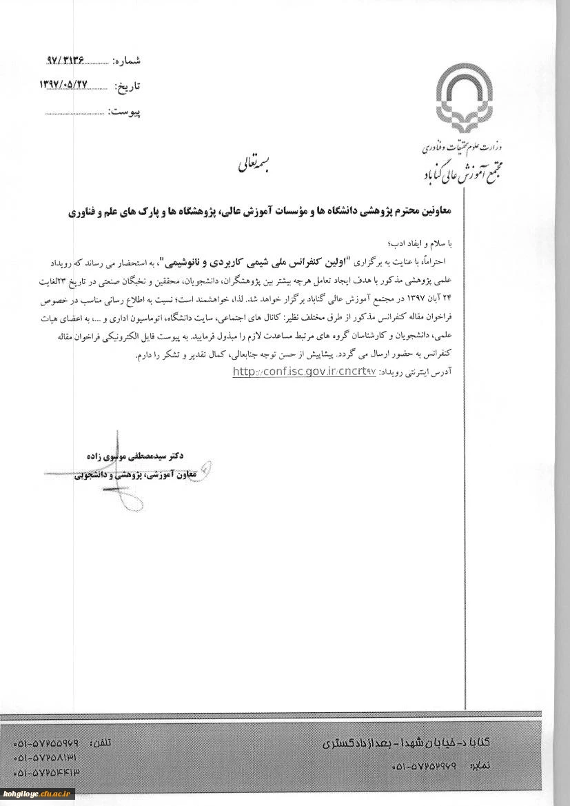 فراخوان برگزاری کنفرانس ملی شیمی کاربردی و نانوشیمی 2