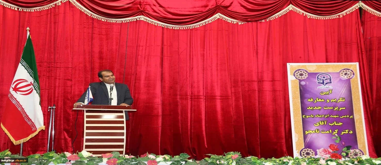 آیین تکریم و معارفه سرپرست جدید پردیس شهید ایزدپناه یاسوج برگزار گردید: دکتر کرامت نامجو به عنوان سرپرست جدید پردیس شهید ایزدپناه یاسوج منصوب گردید. 2