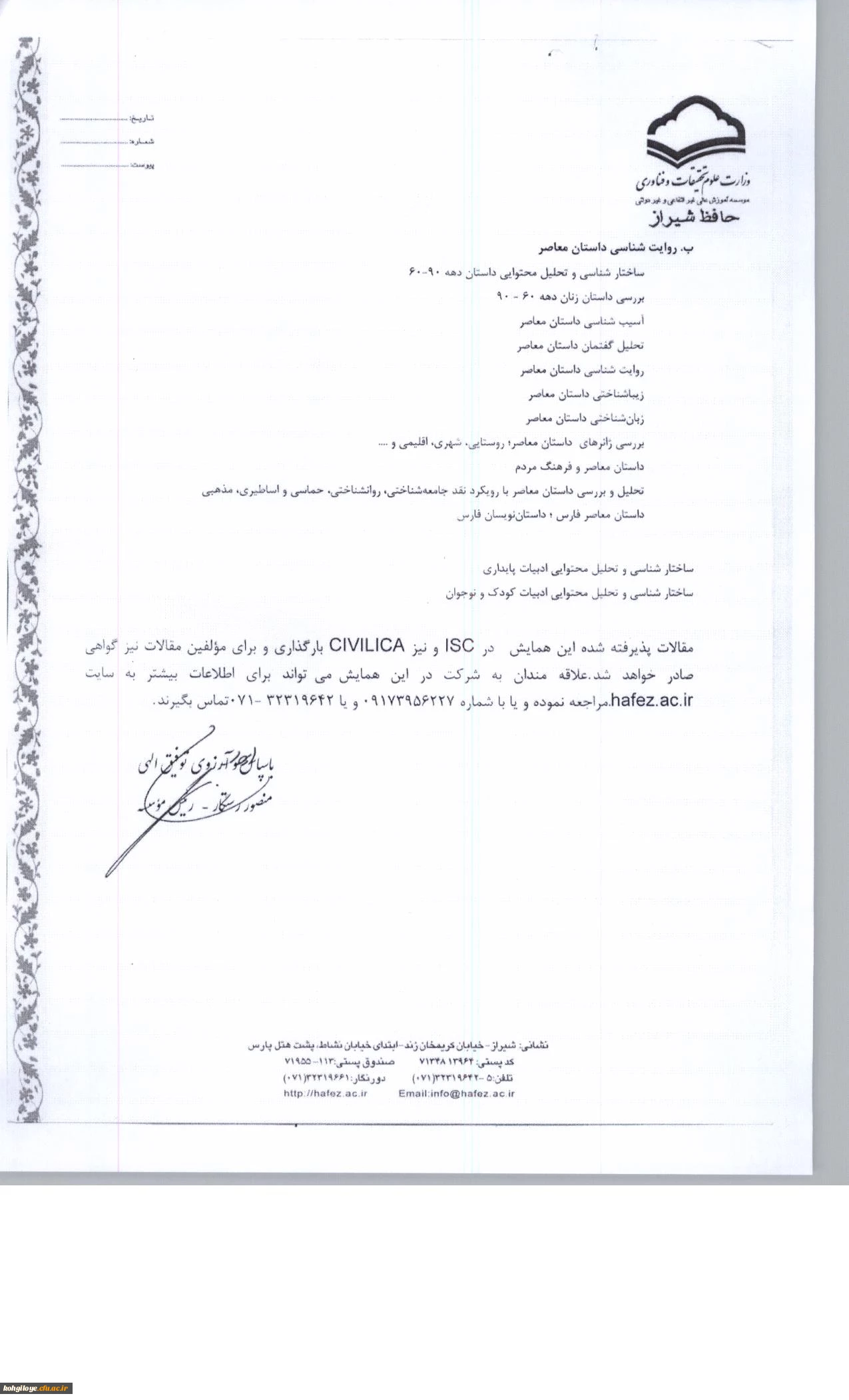 امتیاز دهید : قابل توجه اعضای هیئت علمی ارسال مقاله برای همایش ملی ادبیات معاصر ایران 2 سهشنبه 25 دی 1397 ساعت 14:49