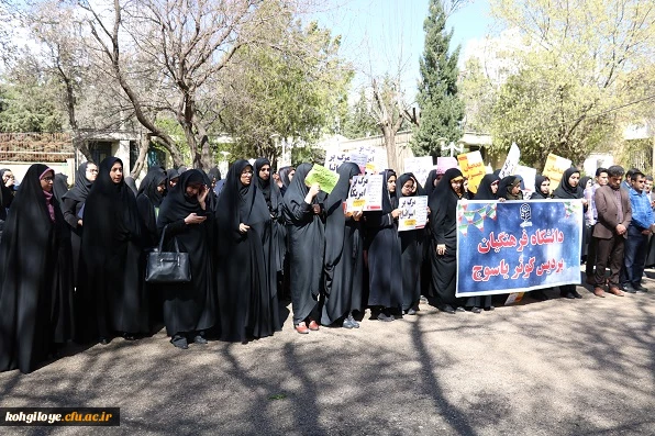 تجمع اعتراضی مسئولان، اساتید، کارکنان و دانشجویان دانشگاه فرهنگیان استان بر ضد اقدام خصمانه رئیس جمهور آمریکا 6