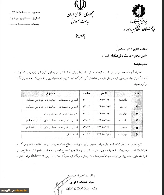 لیست کارگاه های مجازی بنیاد ملی نخبگان استان 3