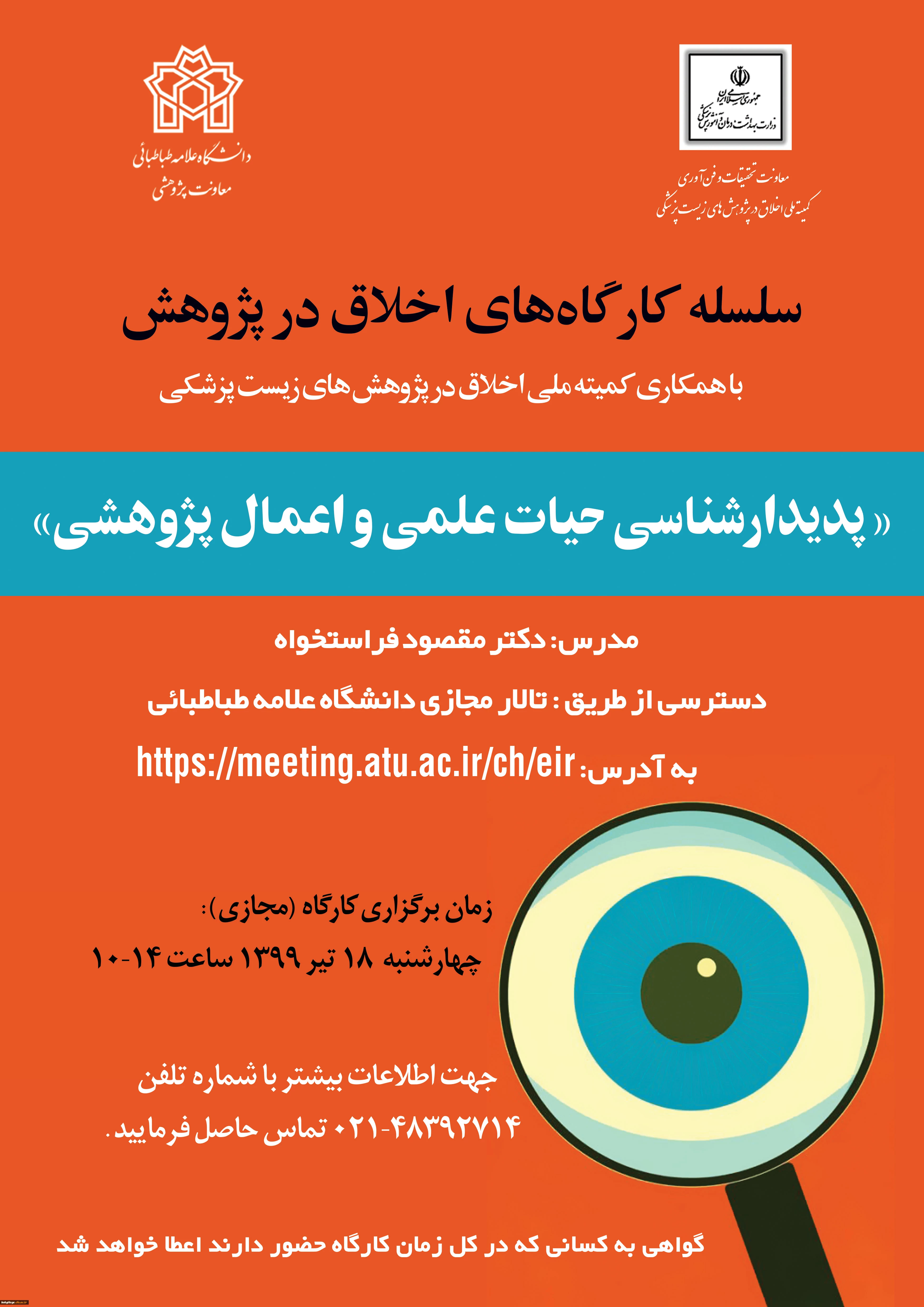 فراخوان سلسله کارگاه های اخلاق در پژوهش با عنوان پدیدارشناسی حیات علمی و اعمال پژوهشی 2