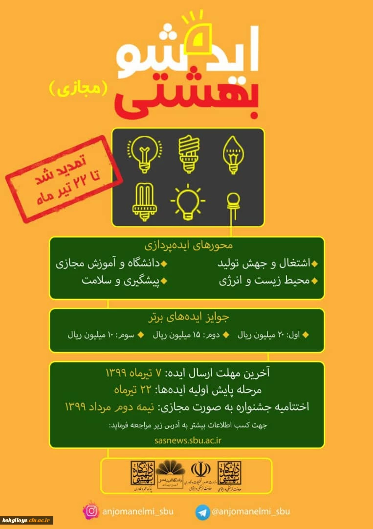 فراخوان تمدید ارسال آثار به «جشنواره ملی ایده شو بهشتی (مجازی) تا تاریخ 22 تیرماه 1399» 2
