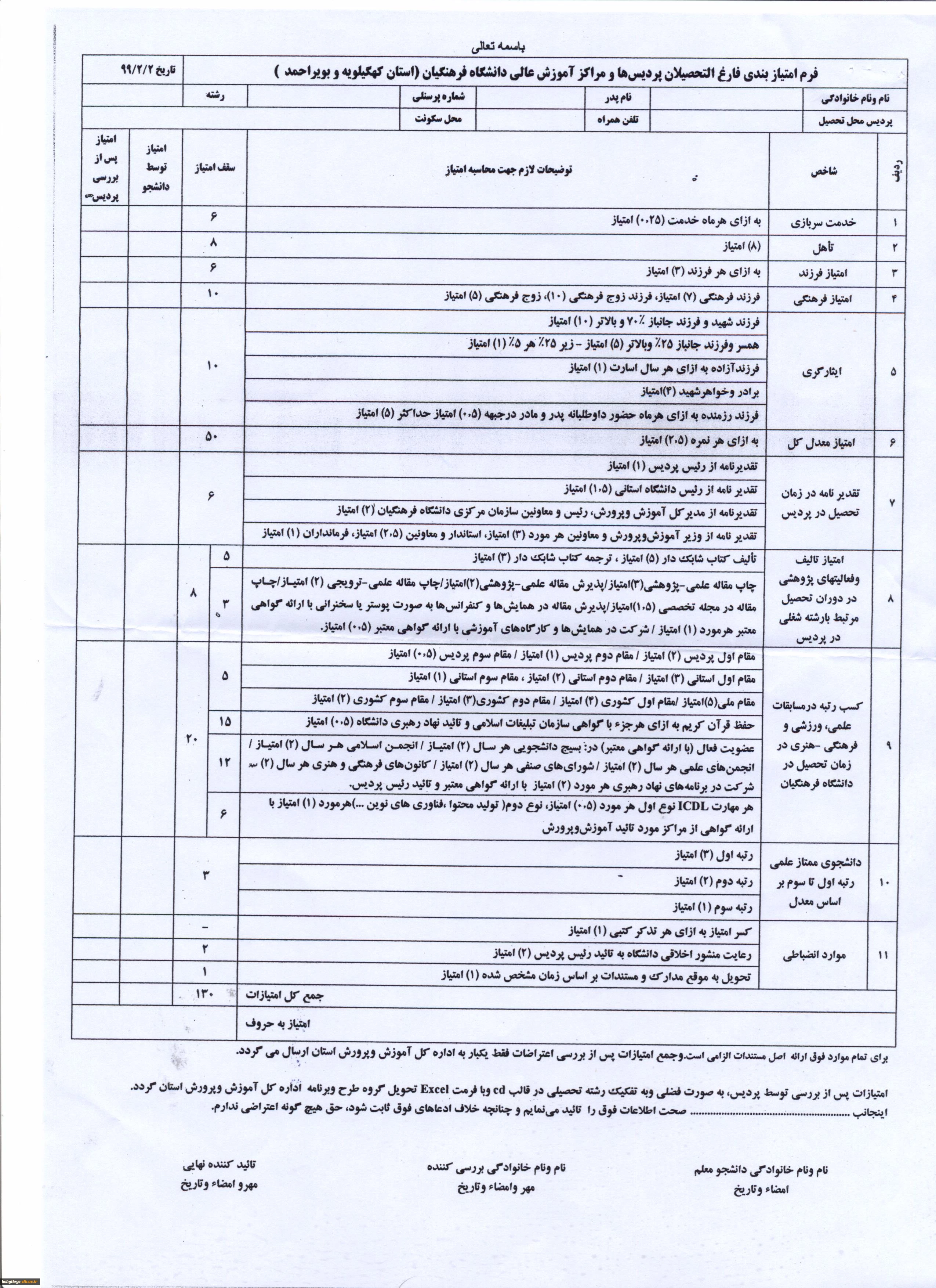 امتیاز بندی فارغ التحصیلان پردیسها و مراکز آموزشی عالی دانشگاه فرهنگیان کهگیلویه وبویراحمد 3