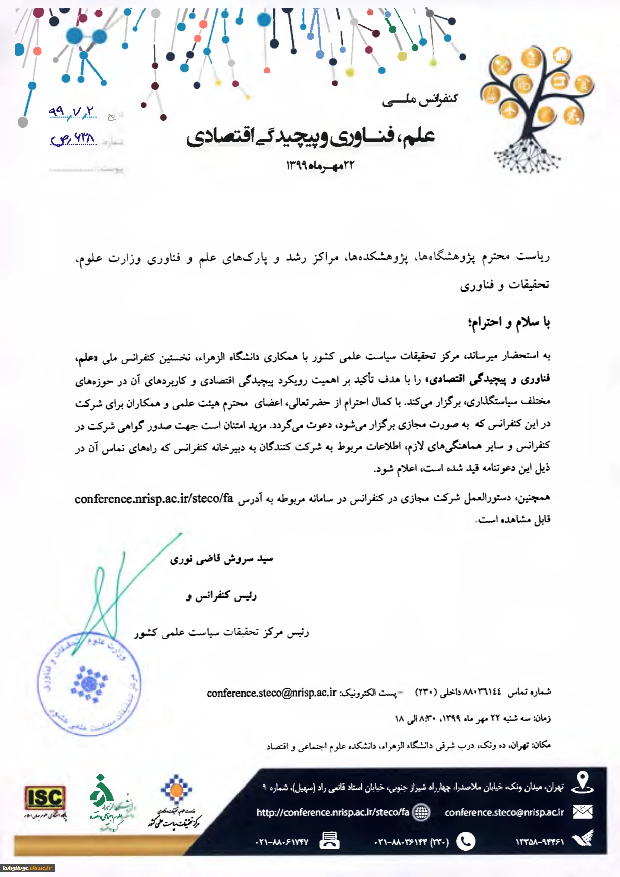 امتیاز دهید : کنفرانس ملی علم،فناوری و پیچیدگی اقتصادی(22مهرماه1399) 2 چهارشنبه 16 مهر 1399 ساعت 8:32