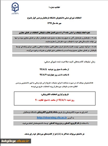 اطلاعیه شماره 1 انتخابات شورای صنفی پردیس کوثر یاسوج 2