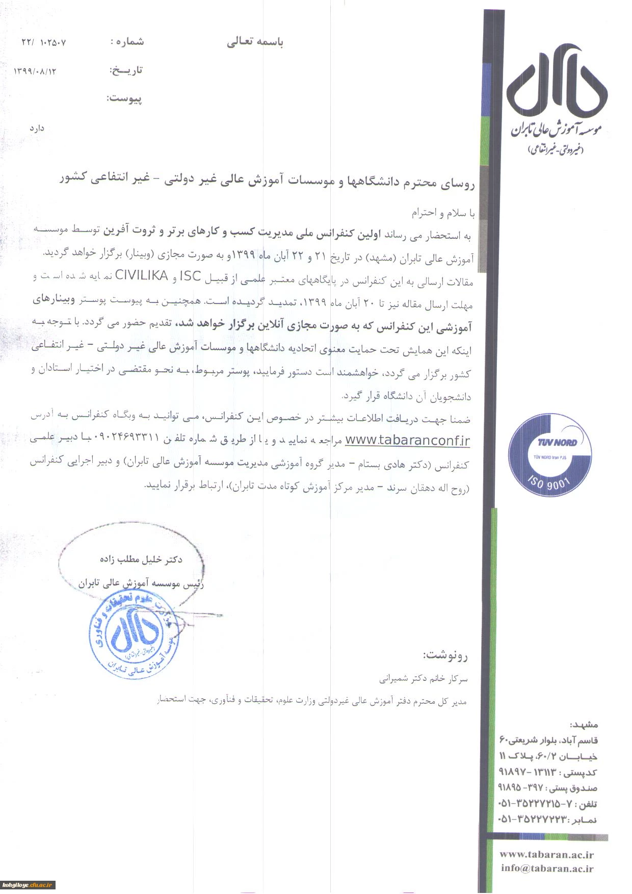 امتیاز دهید : اولین کنفرانس ملی مدیریت کسب و کارهای برتر و ثروت آفرین 4 سهشنبه 20 آبان 1399 ساعت 9:55