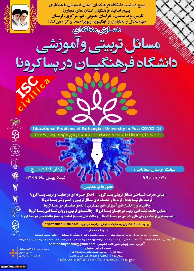 امتیاز دهید : همایش مسائل تربیتی و آموزشی دانشگاه فرهنگیان در دوران پساکرونا 2 شنبه 1 آذر 1399 ساعت 23:44