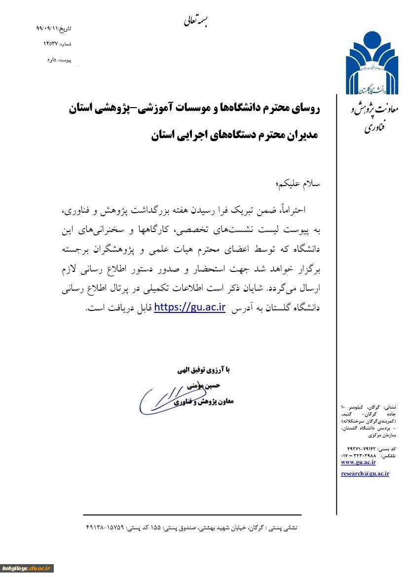سخرانی ها و کارگاههای هفته پژوهش دانشگاه گلستان 2