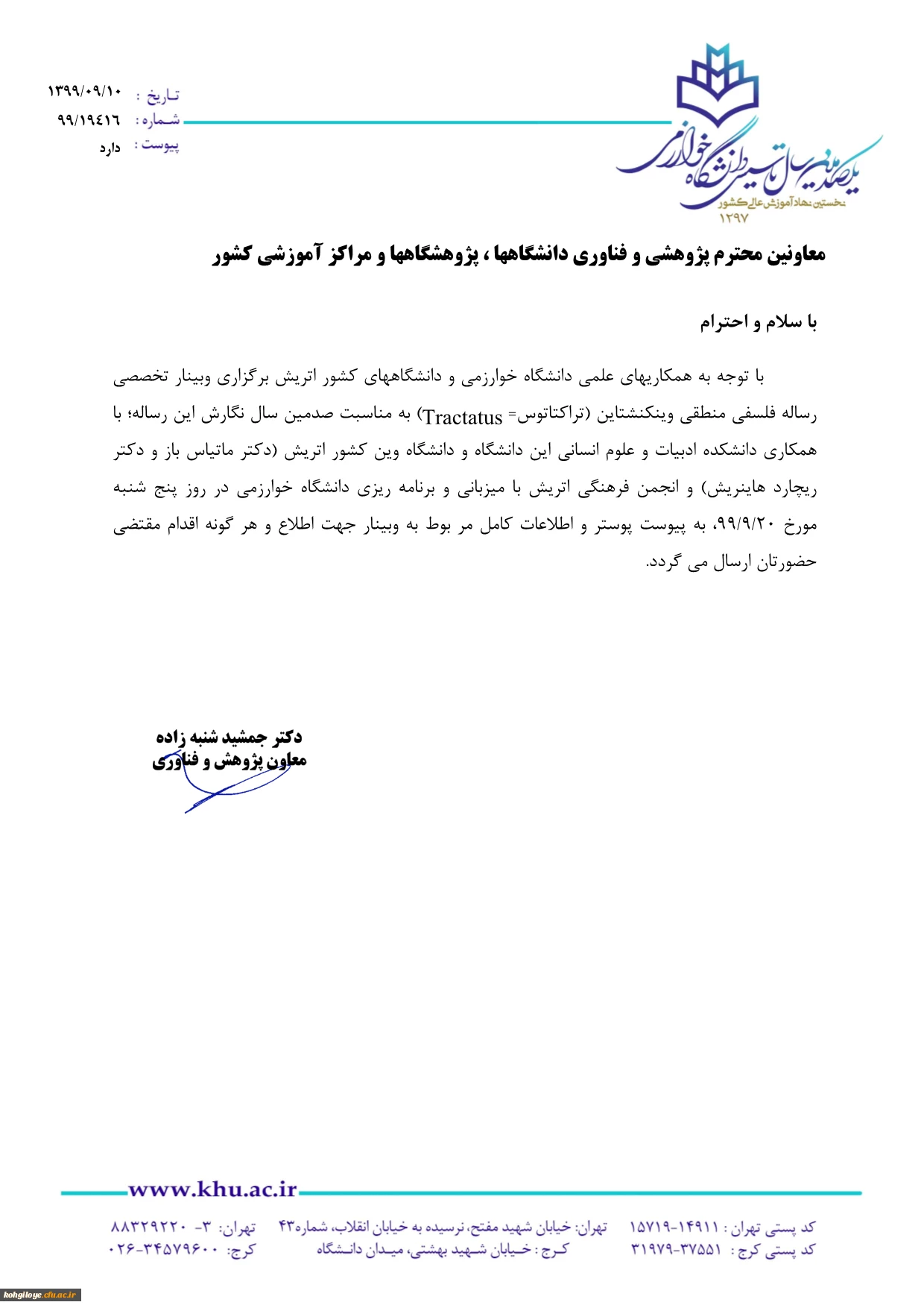 برگزاری وبینار رساله منطقی-فلسفی ویتکنشتاین توسط دانشگاه خوارزمی با مشارکتا دانشگاه وین 2
