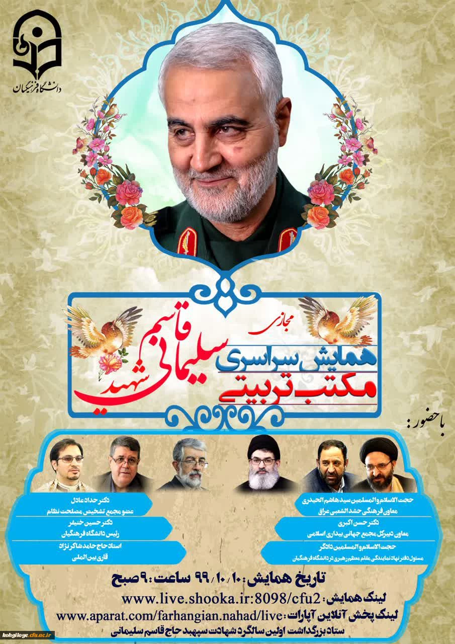 امتیاز دهید : برنامه های پیشنهادی ستاد بزرگداشت اولین سالگرد شهادت سپهبد شهید حاج قاسم سلیمانی 2 سهشنبه 9 دی 1399 ساعت 17:05