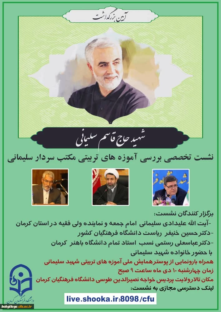 امتیاز دهید : برنامه های پیشنهادی ستاد بزرگداشت اولین سالگرد شهادت سپهبد شهید حاج قاسم سلیمانی 4 سهشنبه 9 دی 1399 ساعت 17:05