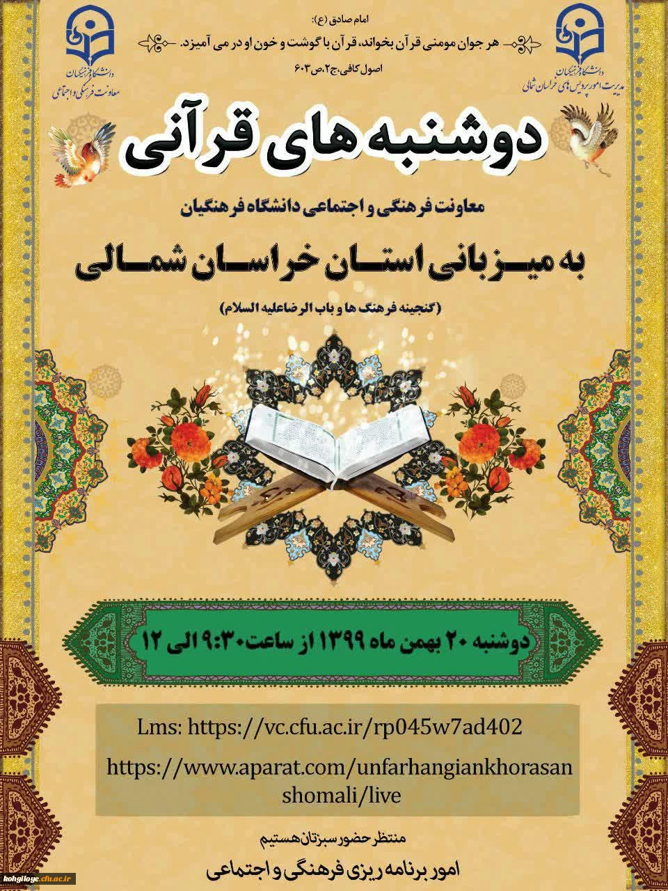 طرح دوشنبه های قرآنی(به میزبانی استان های خراسان شمالی و سمنان) 2