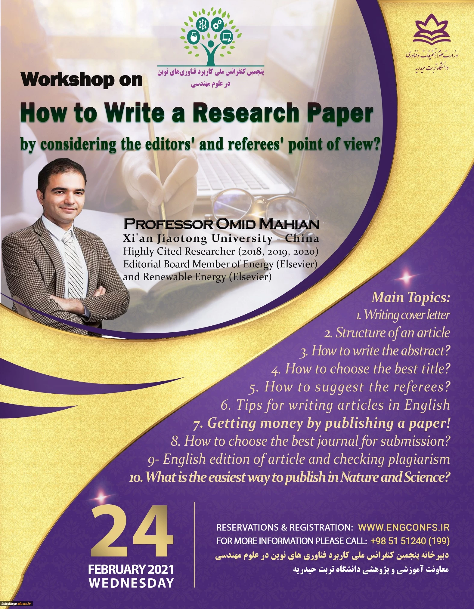 دعوت به شرکت در کارگاه بین المللی نحوه نگارش مقالات علمی برای مجلات معتبر خارجی با در نظر گرفتن رویکرد دبیران و داوران 2