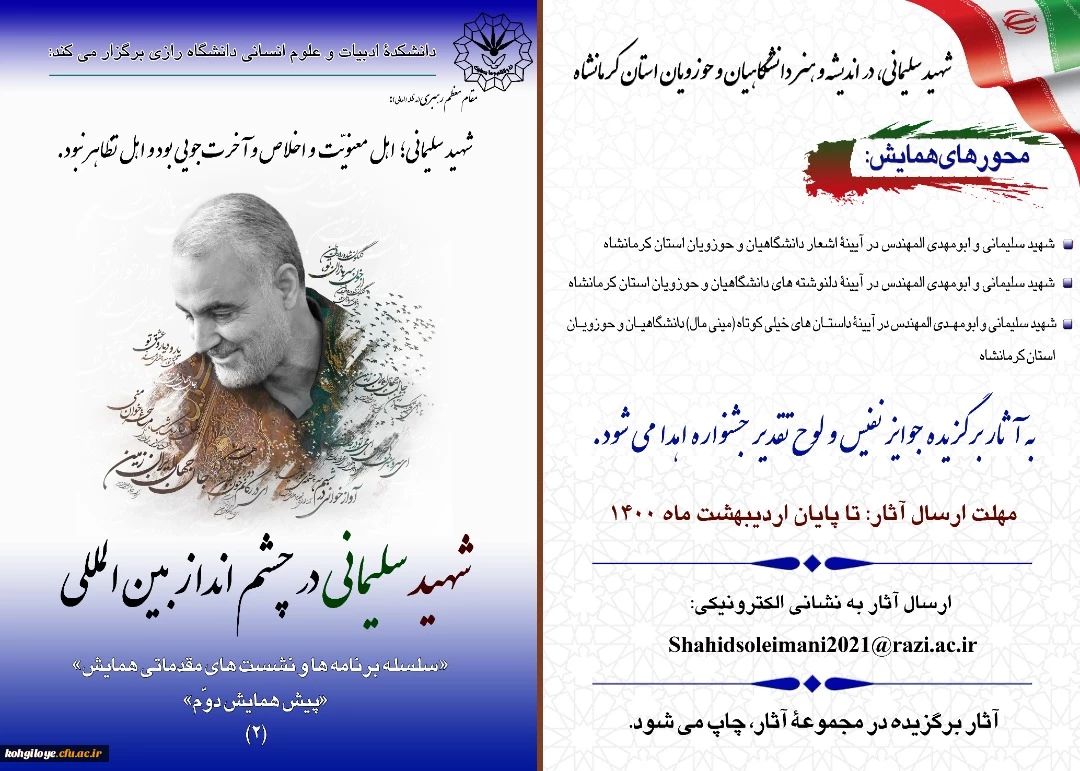 امتیاز دهید : همایش بین المللی شهید سردار سلیمانی در چشم انداز بین المللی 3 یکشنبه 10 اسفند 1399 ساعت 9:32
