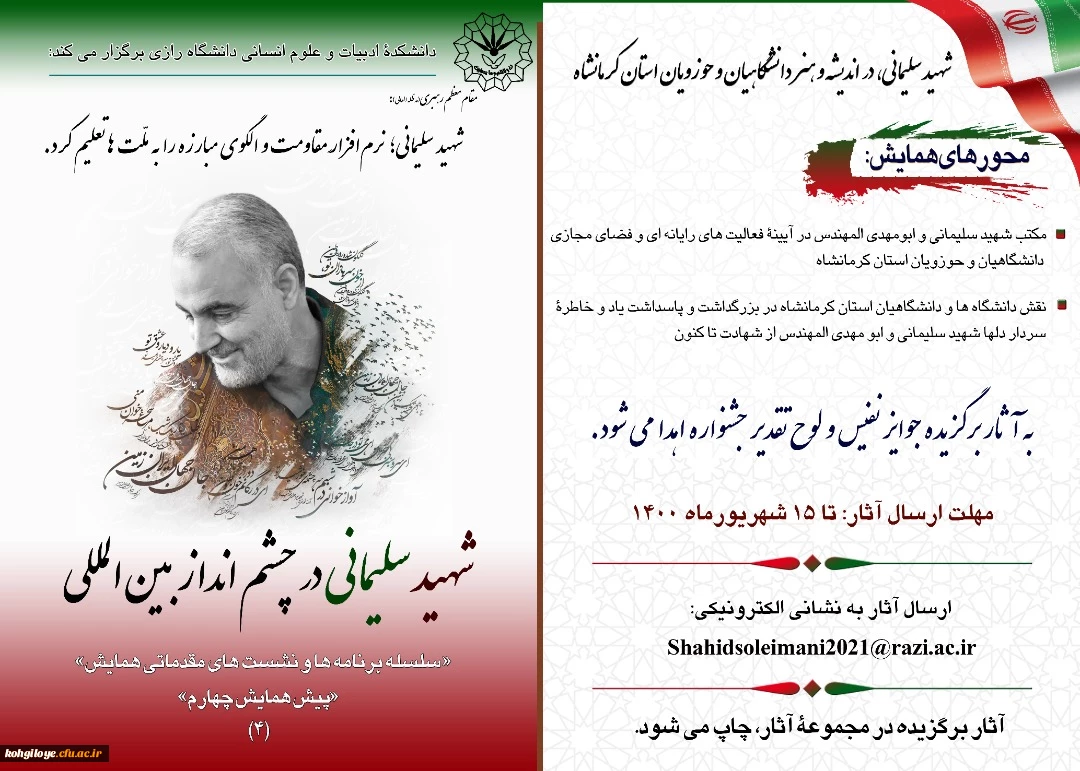 امتیاز دهید : همایش بین المللی شهید سردار سلیمانی در چشم انداز بین المللی 5 یکشنبه 10 اسفند 1399 ساعت 9:32