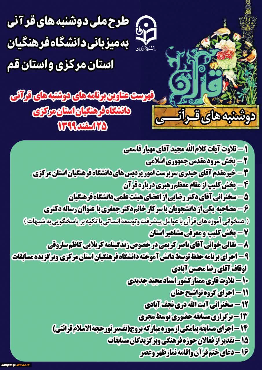 دعوت نامه دوشنبه های قرآنی 1399/12/25 2