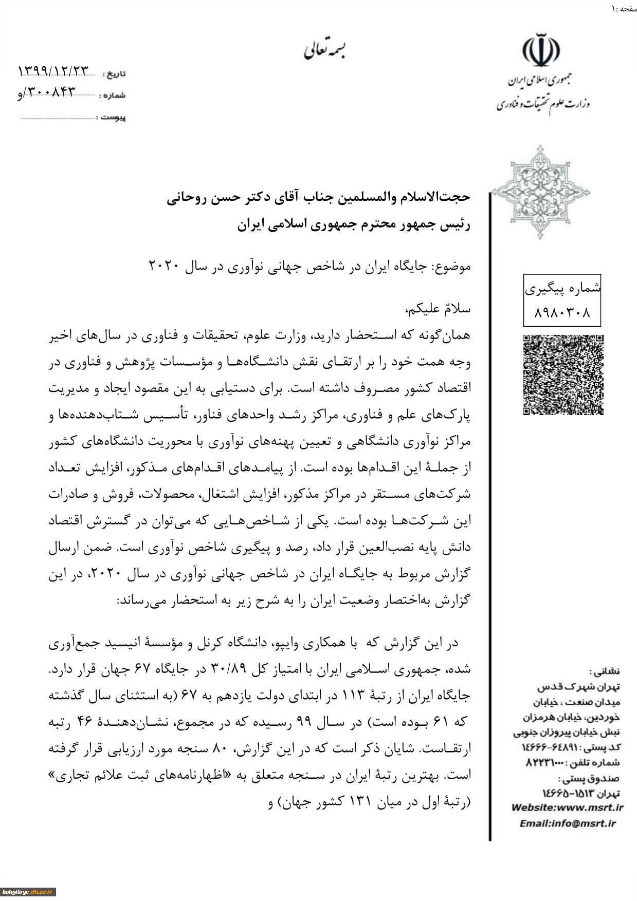 جایگاه ایران در شاخص جهانی نوآوری سال2020میلادی 2