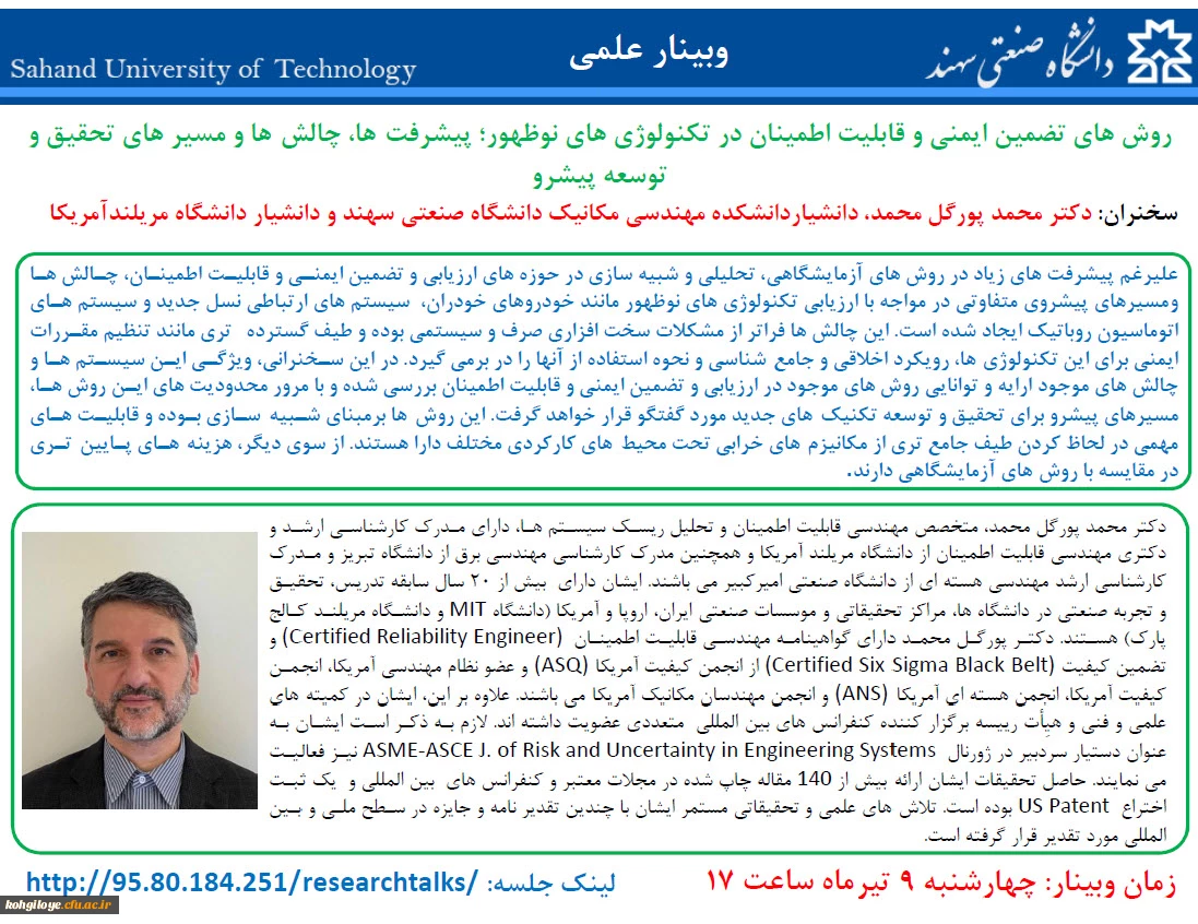 وبینار روشهای تضمینی ایمنی و قابل طمینان در تکنولوژی های نوظهور، پیشرفت ها و مسیرهای تحقیق و توسعه 3