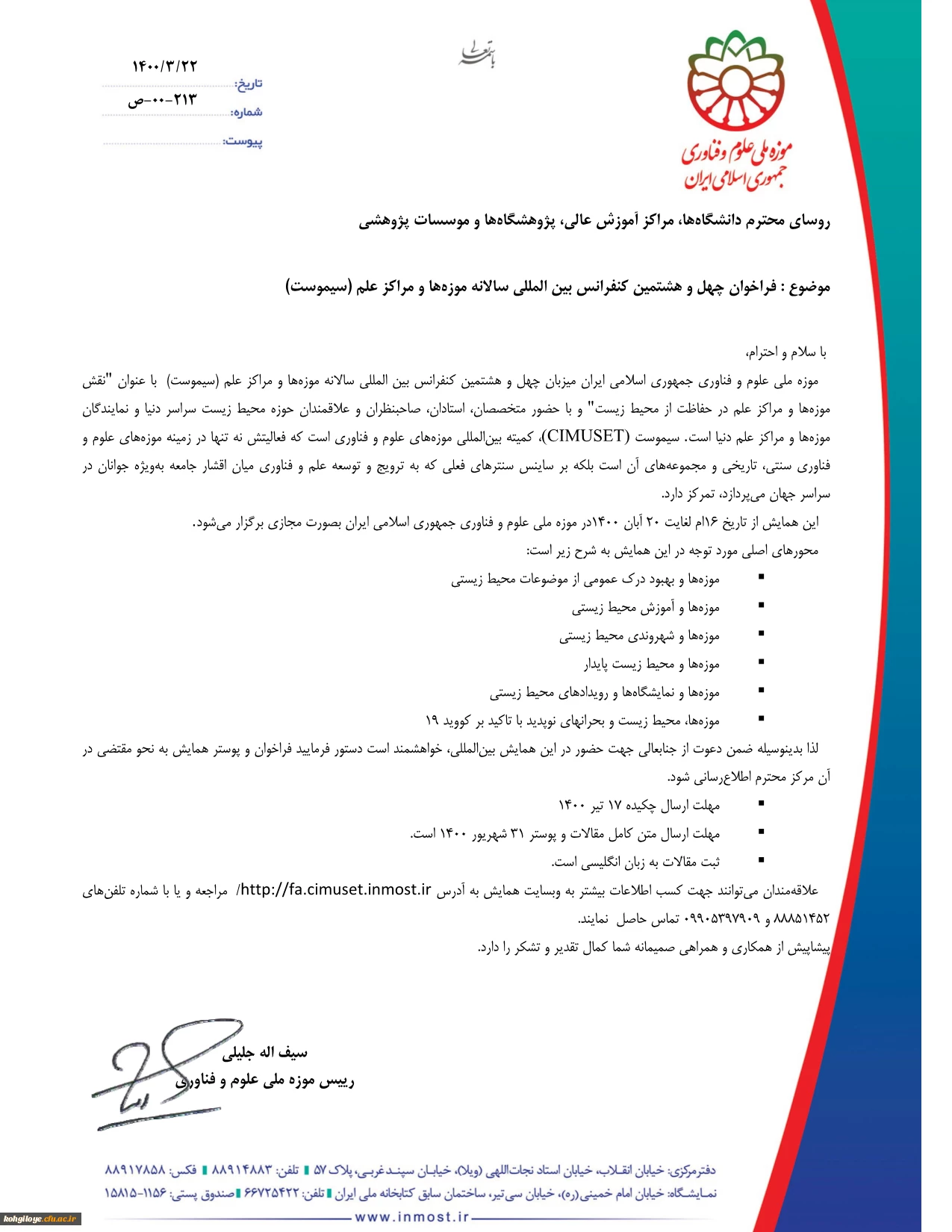امتیاز دهید : فراخوان هل و هشتمین کنفرانس بین المللی سالانه موزه ها و مراکز علم (سیموست) 2 دوشنبه 7 تیر 1400 ساعت 10:47