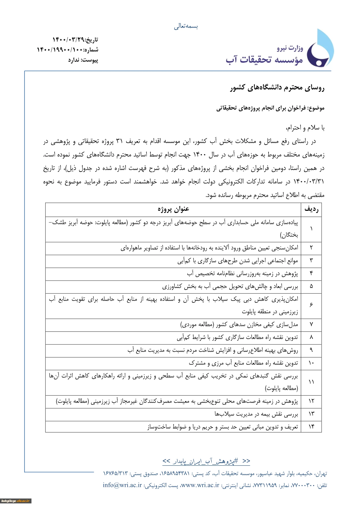 آئیین نامه ها و بخشنامه های دفتر نهاد