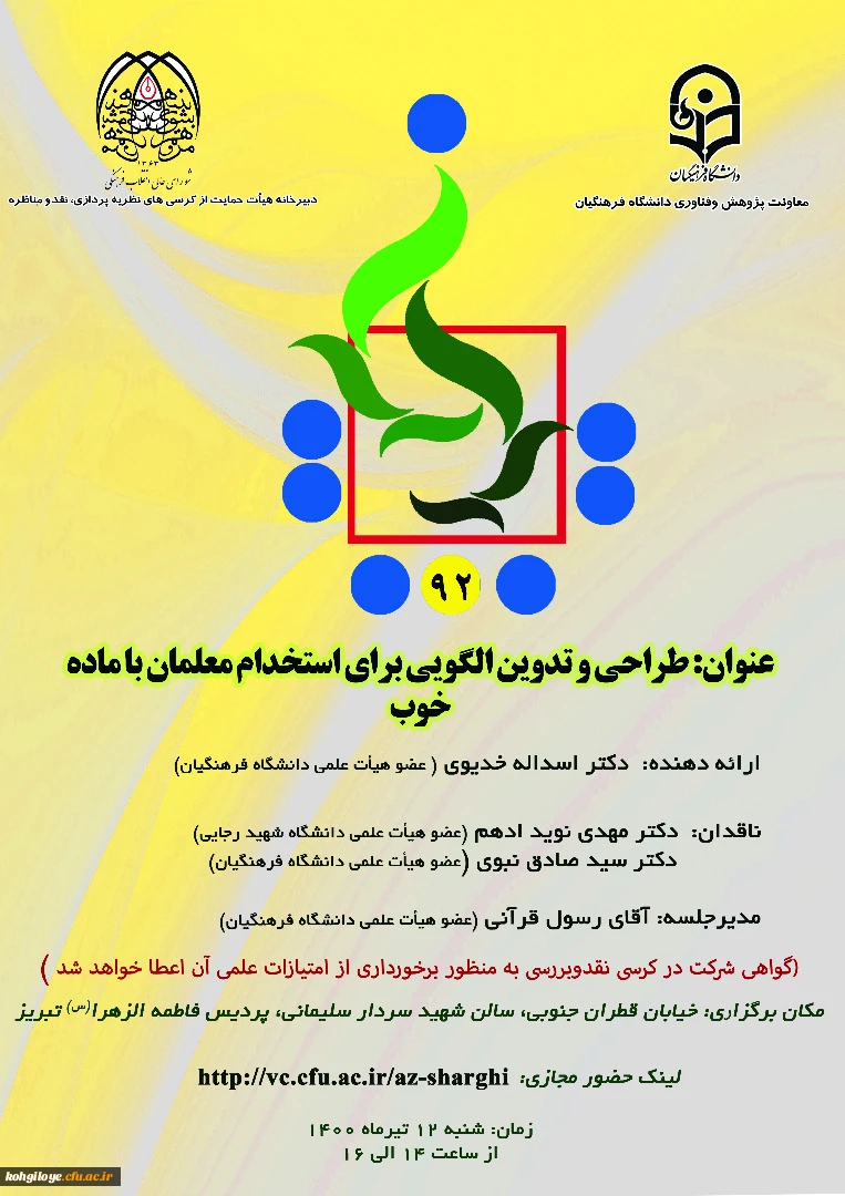 امتیاز دهید : فراخوان شرکت در نود و دومین کرسی نظریه پردازی ، نقد و مناظره 2 دوشنبه 7 تیر 1400 ساعت 11:10
