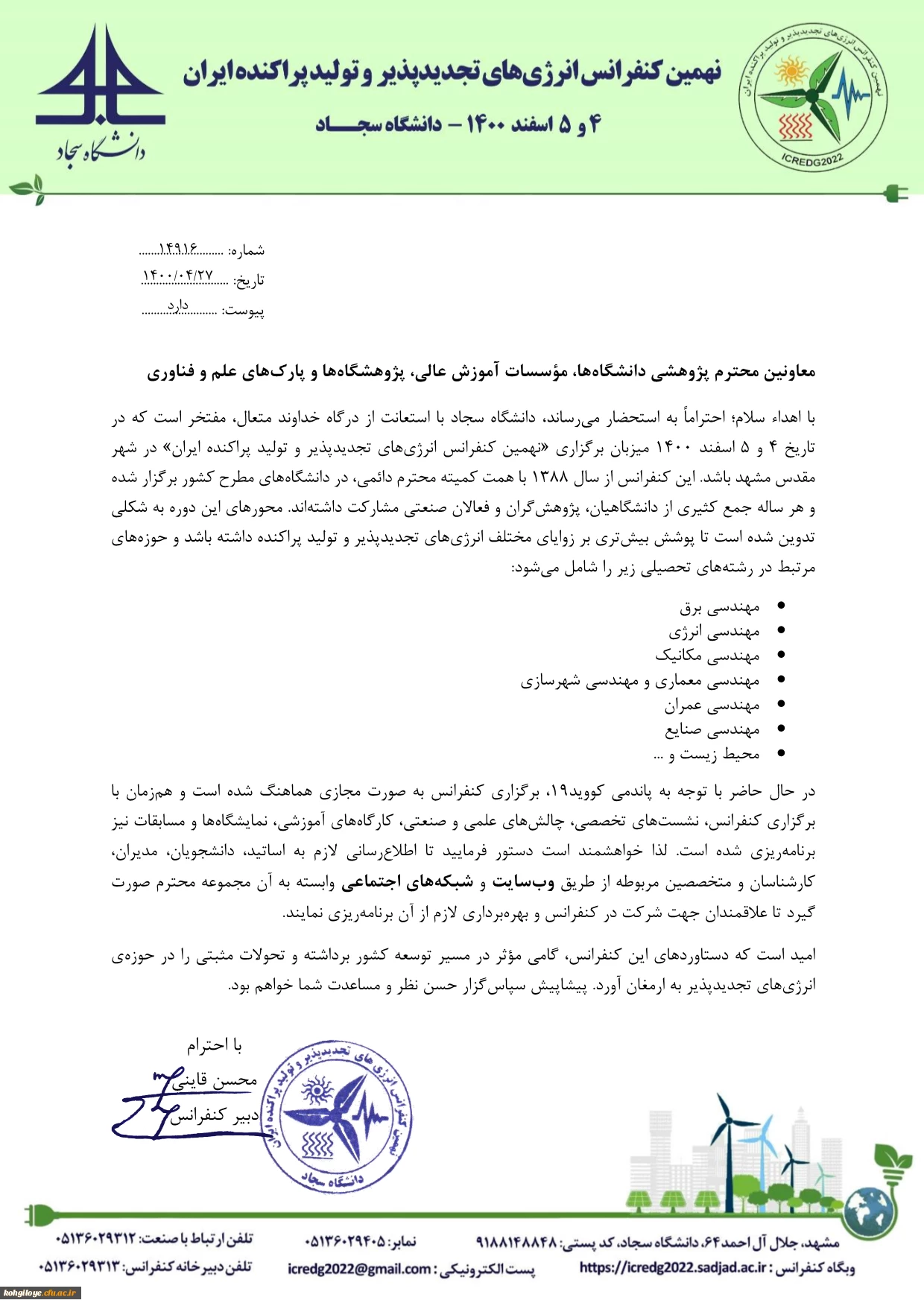 امتیاز دهید : نهمین کنفرانس انرژی های تجدید پذیر و تولید پراکنده ایران 2 دوشنبه 15 شهریور 1400 ساعت 10:25