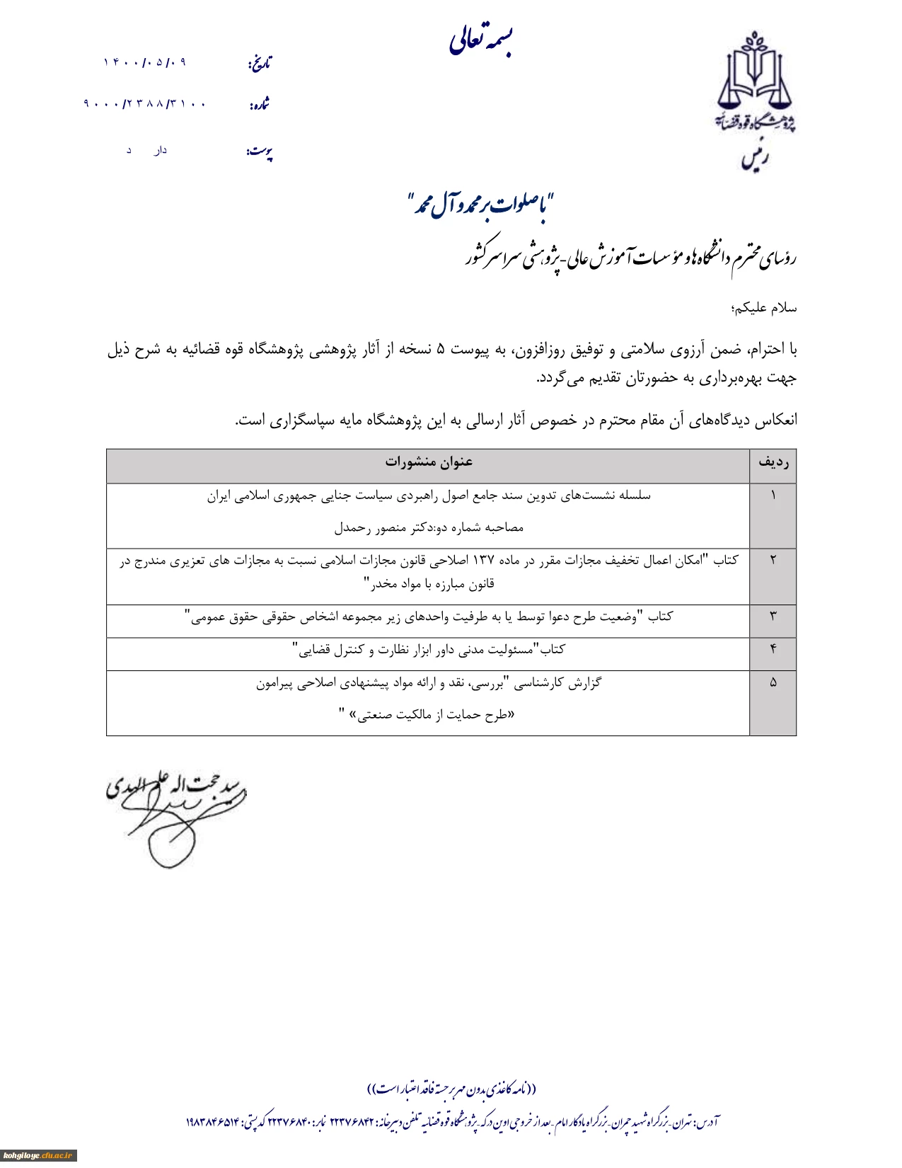 پنج عنوان منشورات پژوهشگاه قوه قضائیه 2