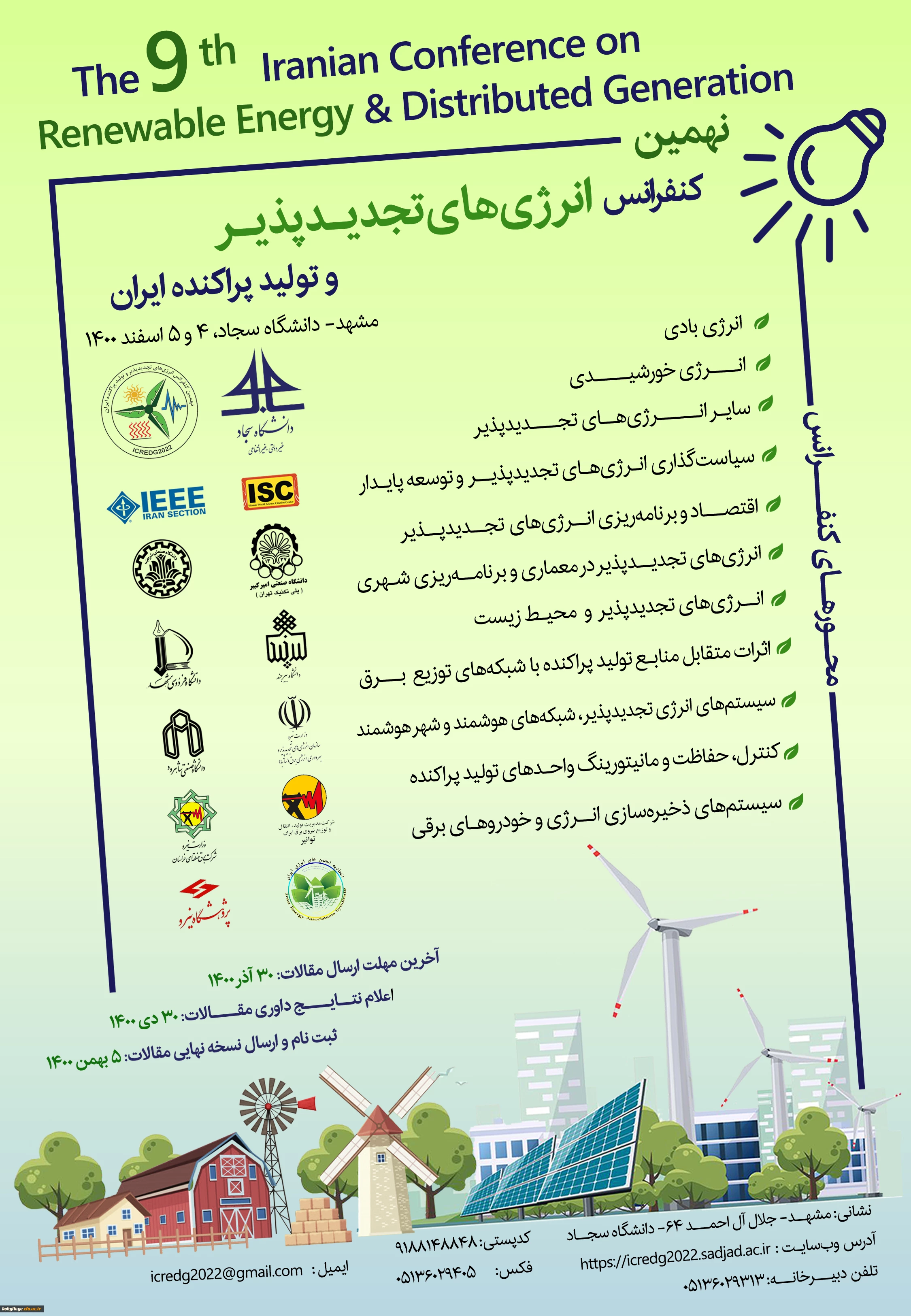 امتیاز دهید : فراخوان شرکت در نهمین کنفرانس انرژی های تجدیدپذیر و تولید پراکنده ایران 2 چهارشنبه 17 شهریور 1400 ساعت 12:47
