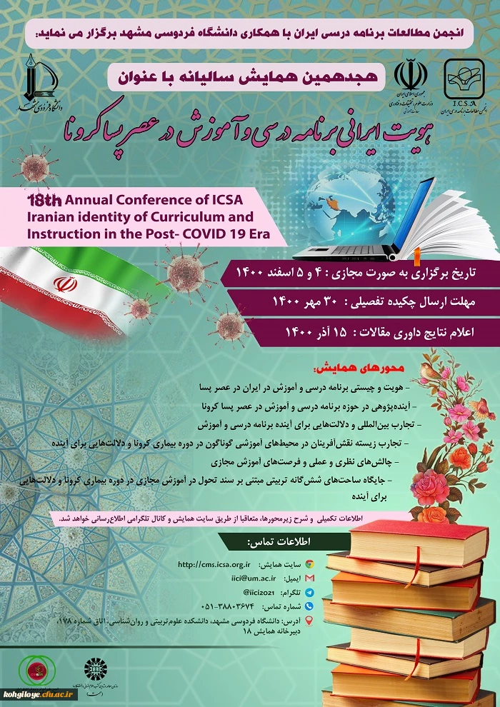 فراخوان شرکت در هجدهمین همایش سالیانه را با عنوان «هویت ایرانی برنامه درسی و آموزش در عصر پساکرونا» 2