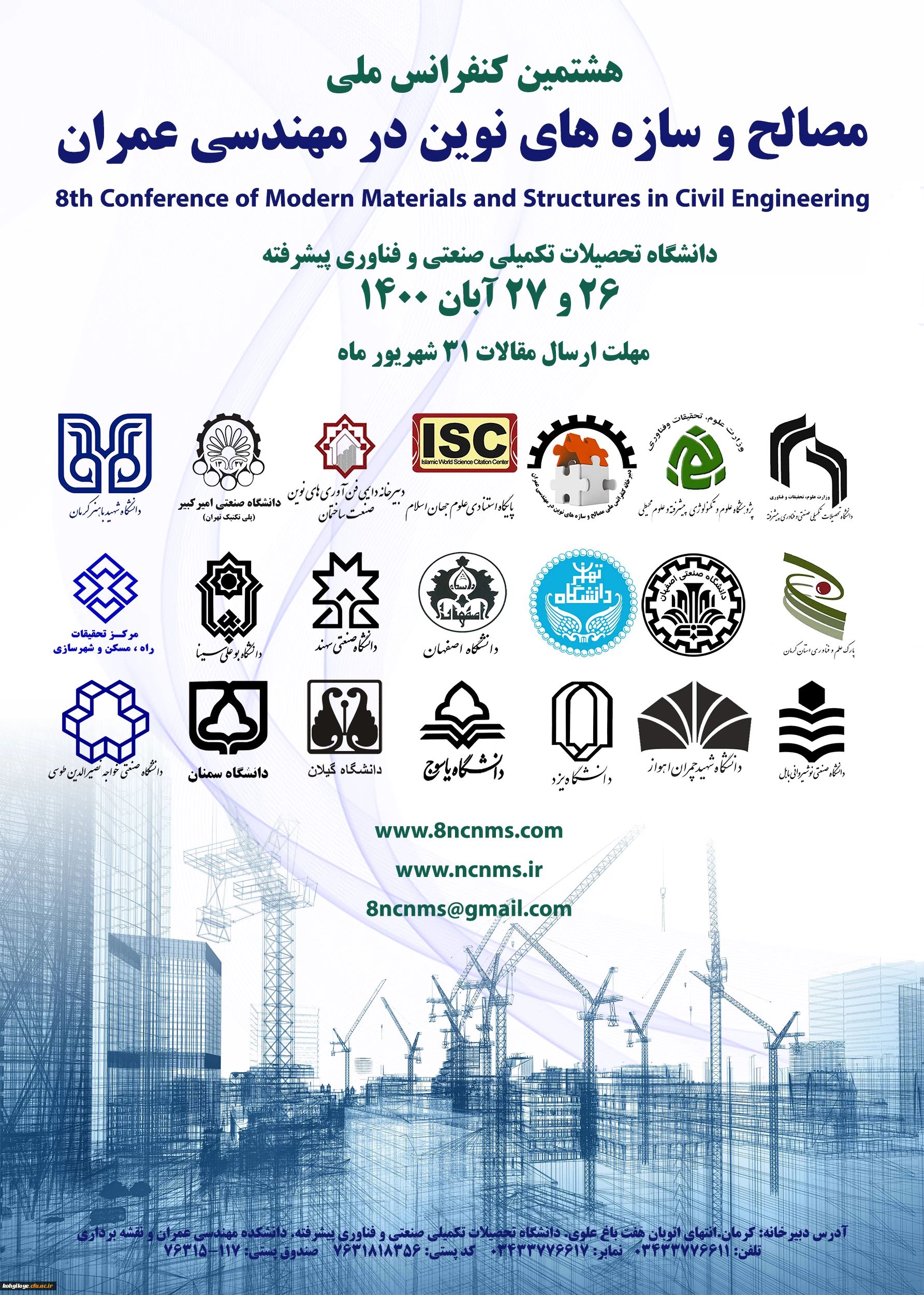 امتیاز دهید : فراخوان شرکت در هشتمین کنفرانس ملی مصالح و سازه های نوین در مهندسی عمران 2 یکشنبه 21 شهریور 1400 ساعت 10:31