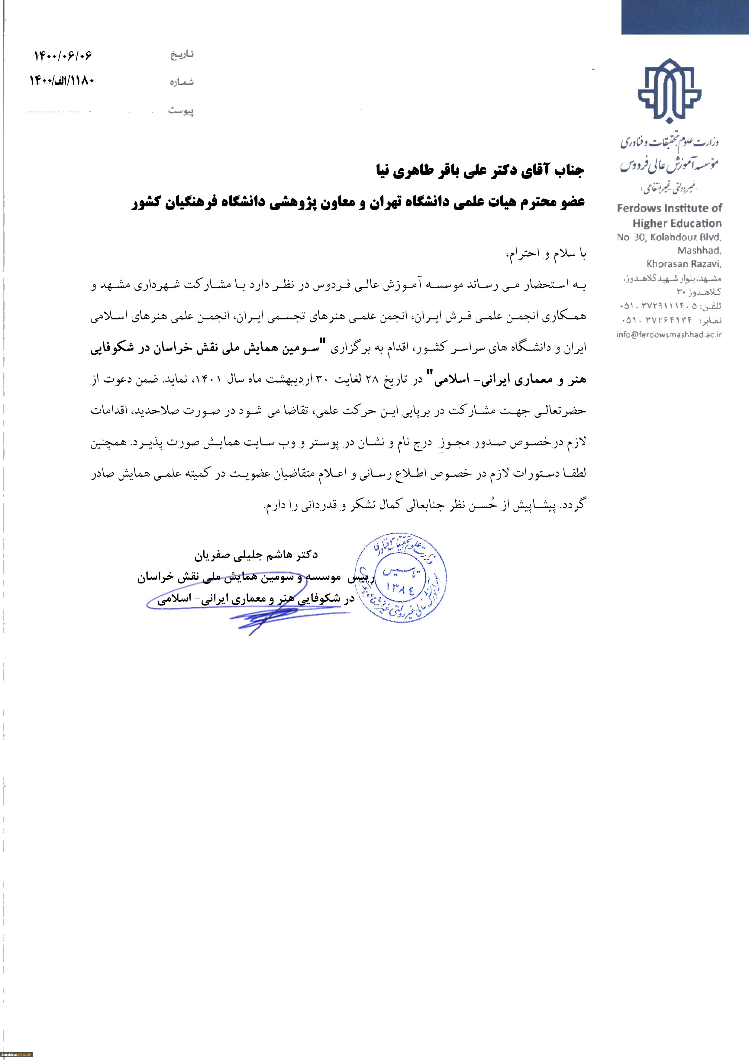 سومین همایش نقش خراسان در شکوفایی هنر و معماری اسلامی 2