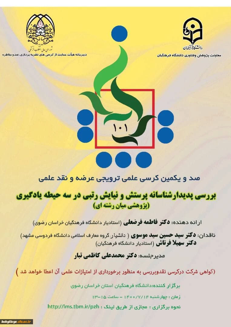 امتیاز دهید : فراخوان شرکت در صدو یکمین کرسی نظریه پردازی ، نقد و مناظره 2 شنبه 17 مهر 1400 ساعت 8:40