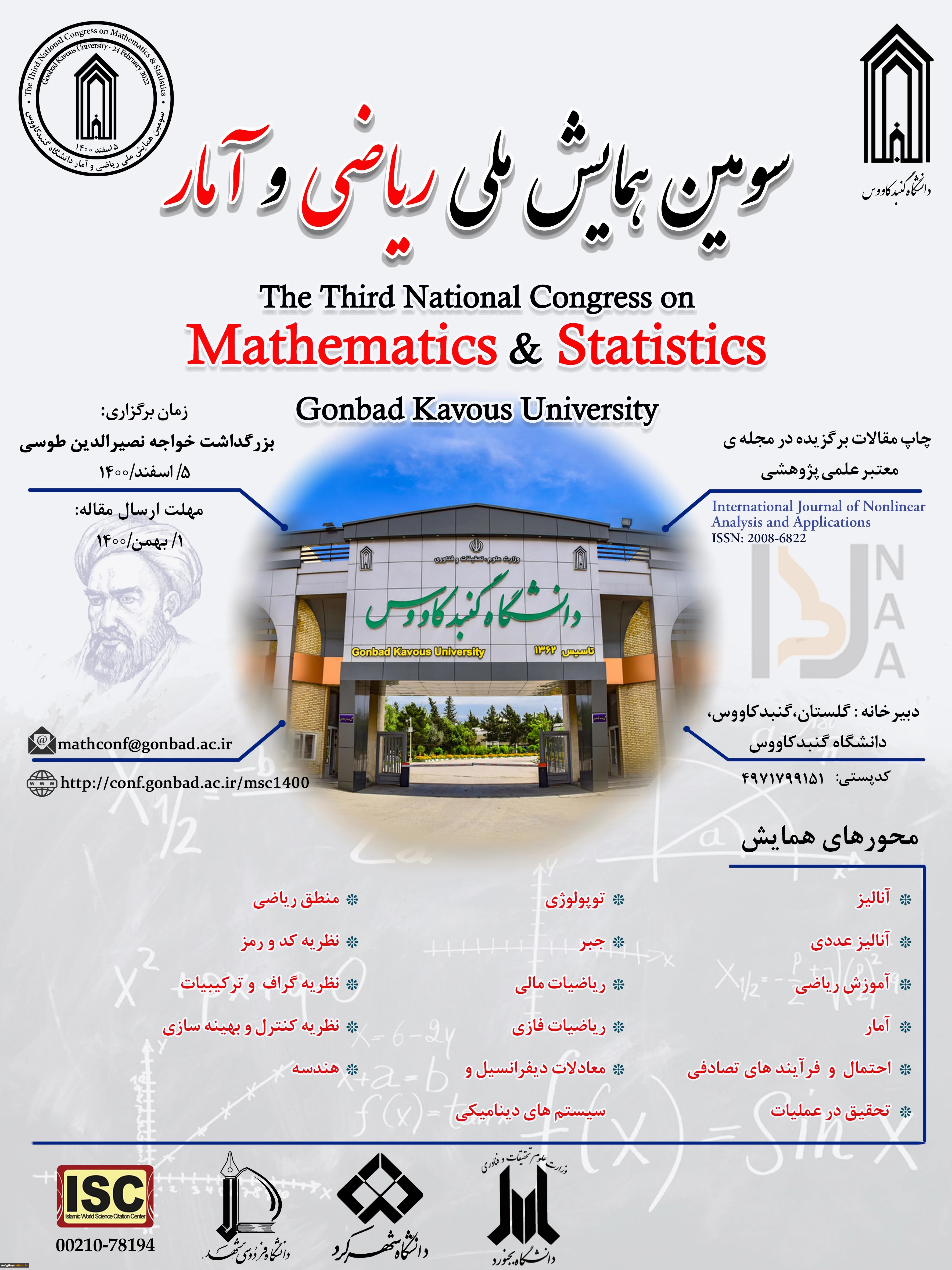 فراخوان شرکت در سومین همایش ملی ریاضی و آمار 2