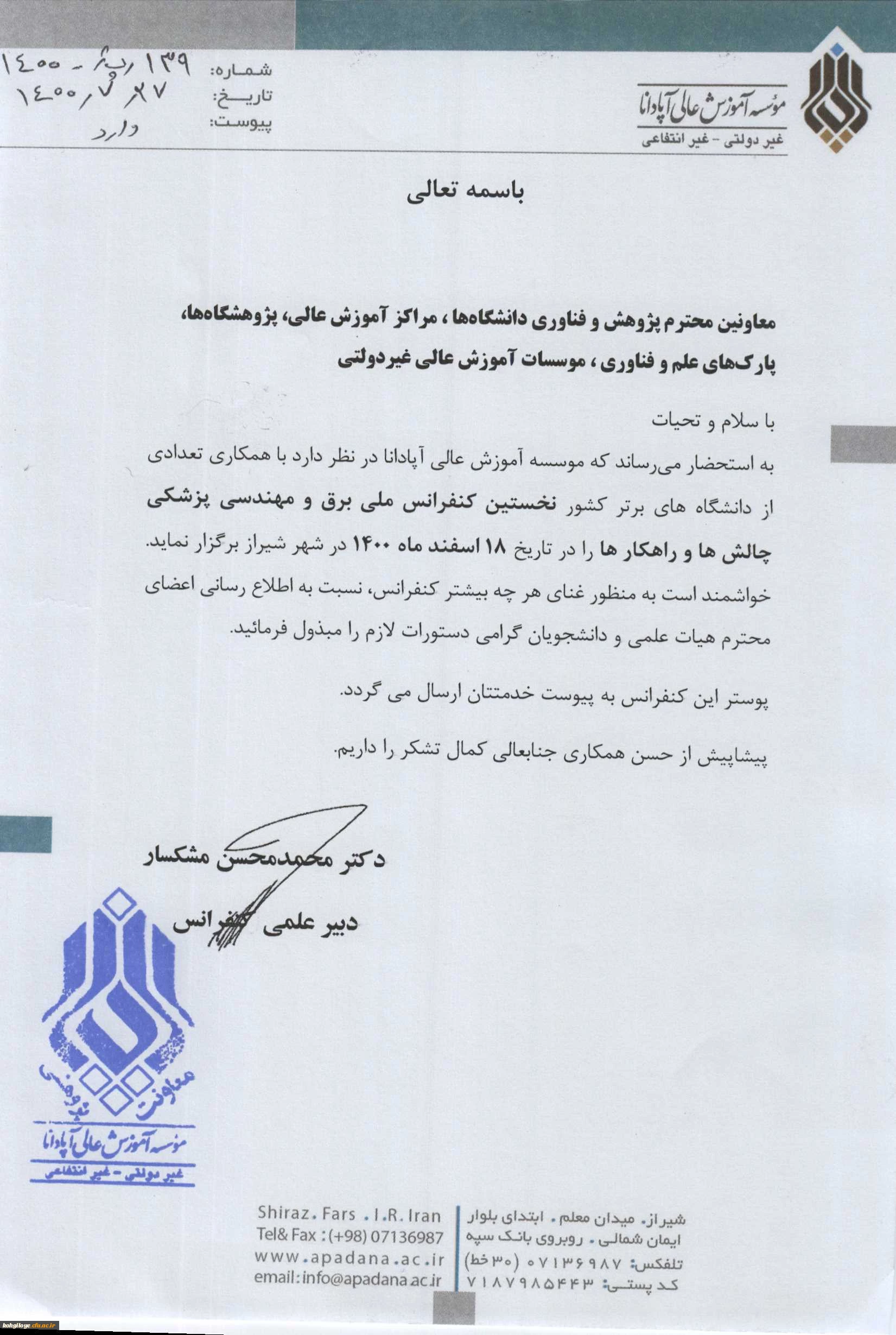 امتیاز دهید : نخستین کنفرانس ملی برق و مهندسی پزشکی، چالش ها و راهکارها 3 چهارشنبه 5 آبان 1400 ساعت 11:47