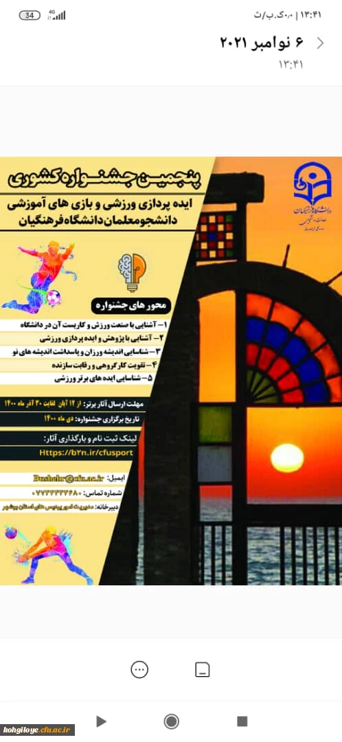 امتیاز دهید : فراخوان شرکت در پنجمین جشنواره کشوری ایده پردازی ورزشی و بازی ها آموزشی 2 شنبه 22 آبان 1400 ساعت 12:08