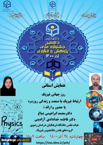 امتیاز دهید : فراخوان شرکت در همایش استانی روز جهانی فیزیک «ارتباط فیزیک با صنعت و زندگی روزمره» 2 چهارشنبه 24 آذر 1400 ساعت 9:56