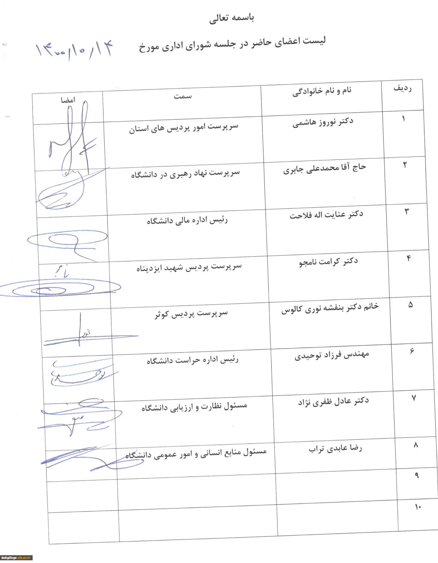 هیأت رئیسه دانشگاه