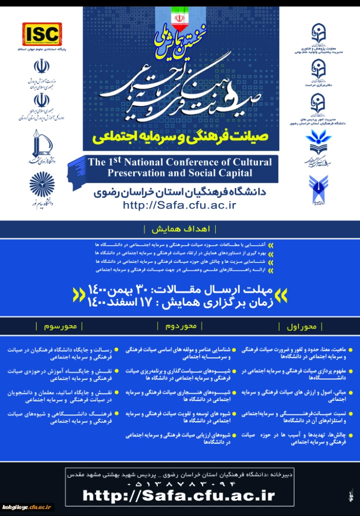 برگزاری نخستین همایش ملی «صیانت فرهنگی و سرمایه اجتماعی»به میزبانی دانشگاه فرهنگیان استان خراسان رضوی/14000 2