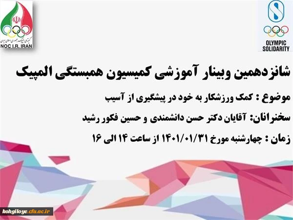امتیاز دهید : فراخوان شرکت در شانزدهمین وبینار آموزشی همبستگی المپیک 2 یکشنبه 28 فروردین 1401 ساعت 9:20
