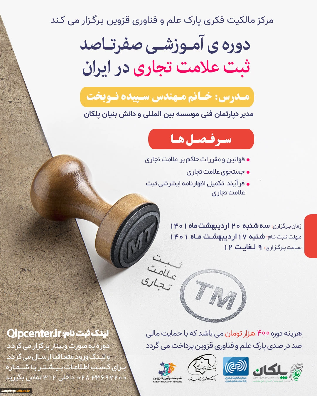 امتیاز دهید : فراخوان شرکت در دوره آموزشی ثبت علامت تجاری در داخل ایران 2 شنبه 10 اردیبهشت 1401 ساعت 10:38