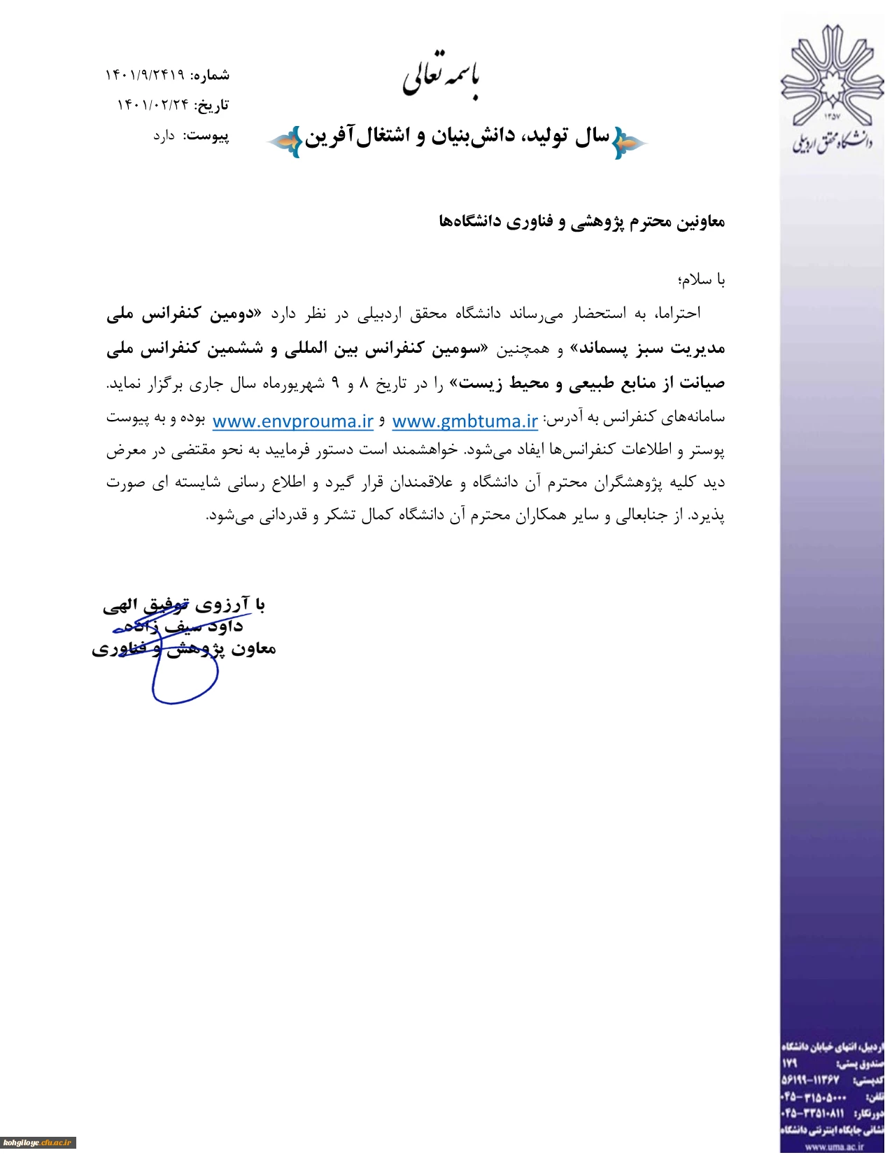 امتیاز دهید : سومین همایش بین المللی صیانت از منابع طبیعی و محیط زیست 4 سهشنبه 10 خرداد 1401 ساعت 13:17