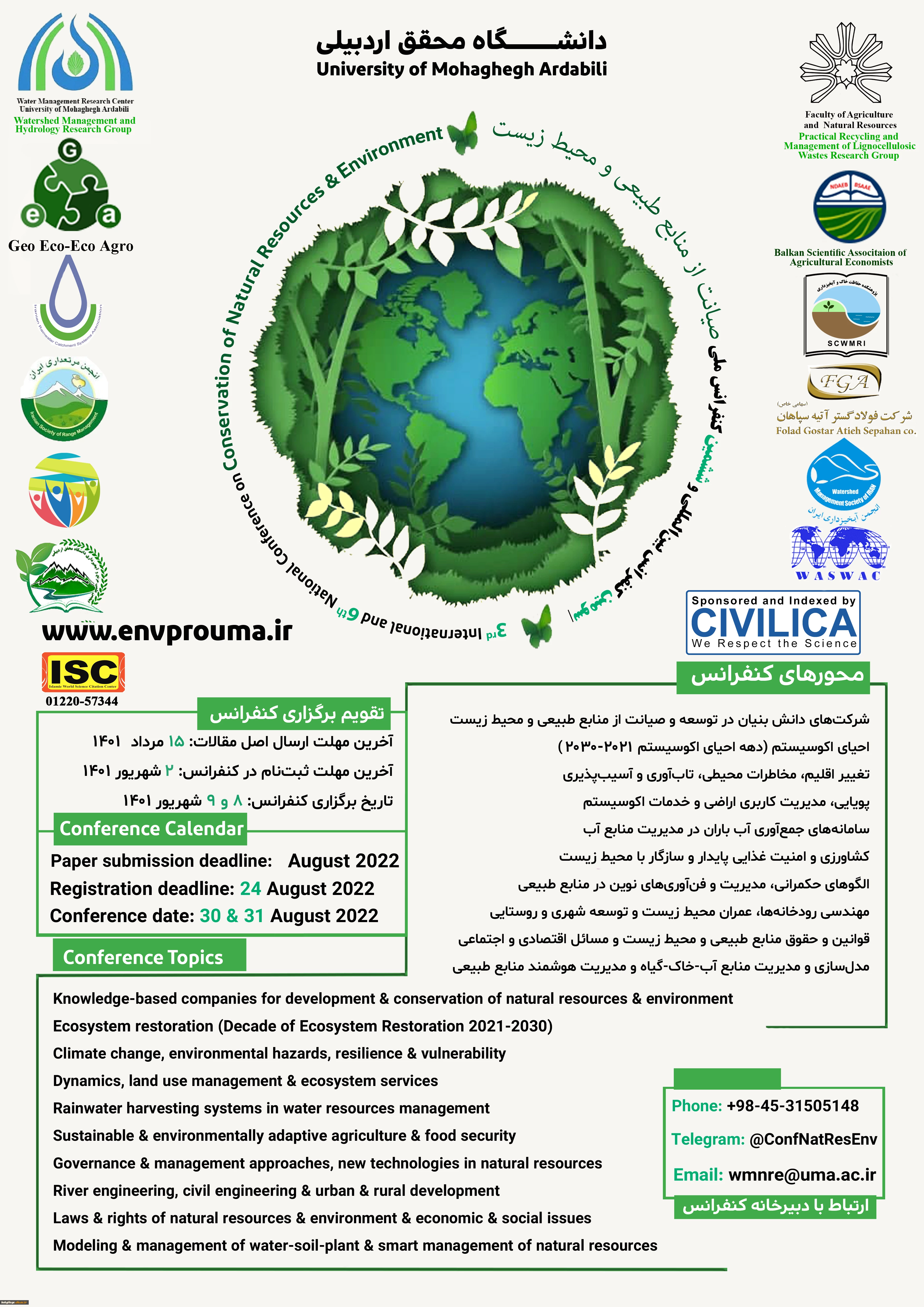 فراخوان شرکت در دومین کنفرانس بین المللی و پنجمین کنفرانس ملی صیانت از منابع طبیعی و محیط زیست و اولین کنفرانس ملی مدیریت سبز پسماند 2