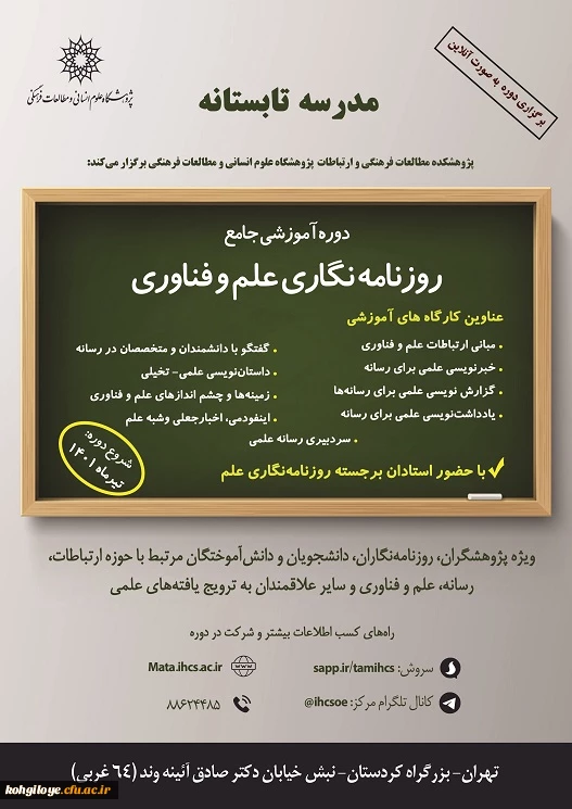فراخوان شرکت در دوره آموزشی «مدرسه تابستانه: کارگاه آموزشی ارتباطات و روزنامه نگاری علم و فناوری» 2