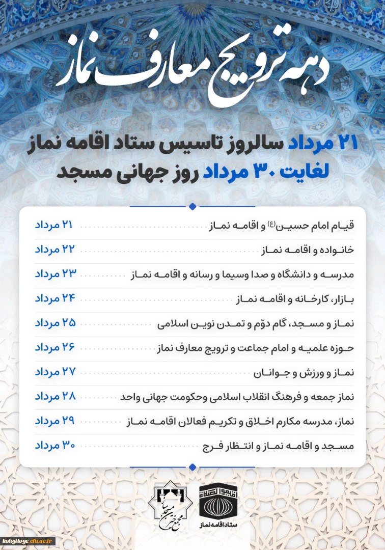 دهه ترویج معارف نماز(21 مرداد سالروز تأسیس ستاد اقامه نماز- لغایت مرداد روز جهانی مسجد) گرامی باد. 2