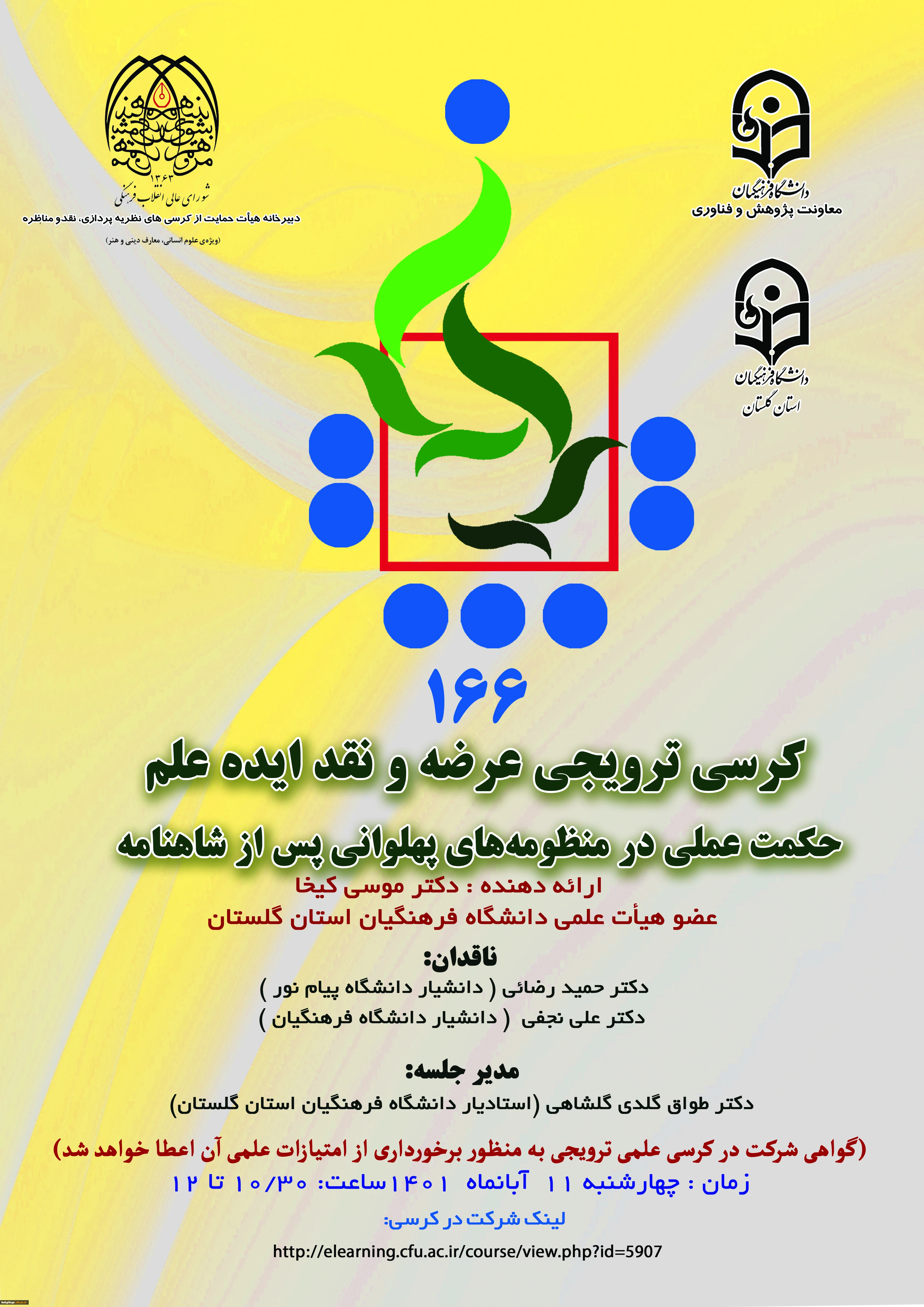 برگزاری کرسی ترویجی شماره 166 با عنوان "حکمت عملی در منظومه های پهلوانی پس از شاهنامه 2