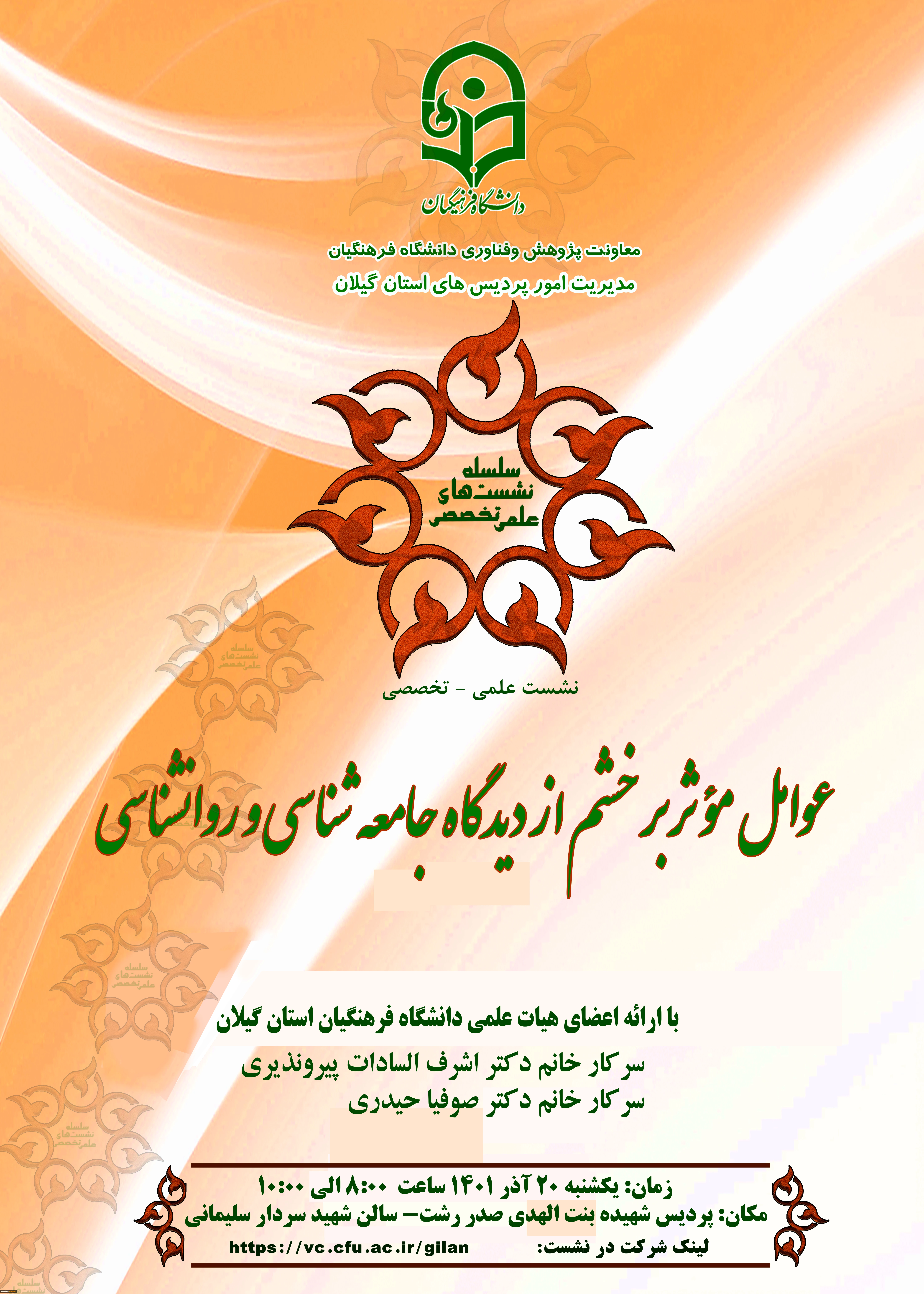 امتیاز دهید : نشست علمی - تخصصی با عنوان عوامل مؤثر برخشم از دیدگاه جامعه شناسی و روانشناسی 2 شنبه 19 آذر 1401 ساعت 13:59